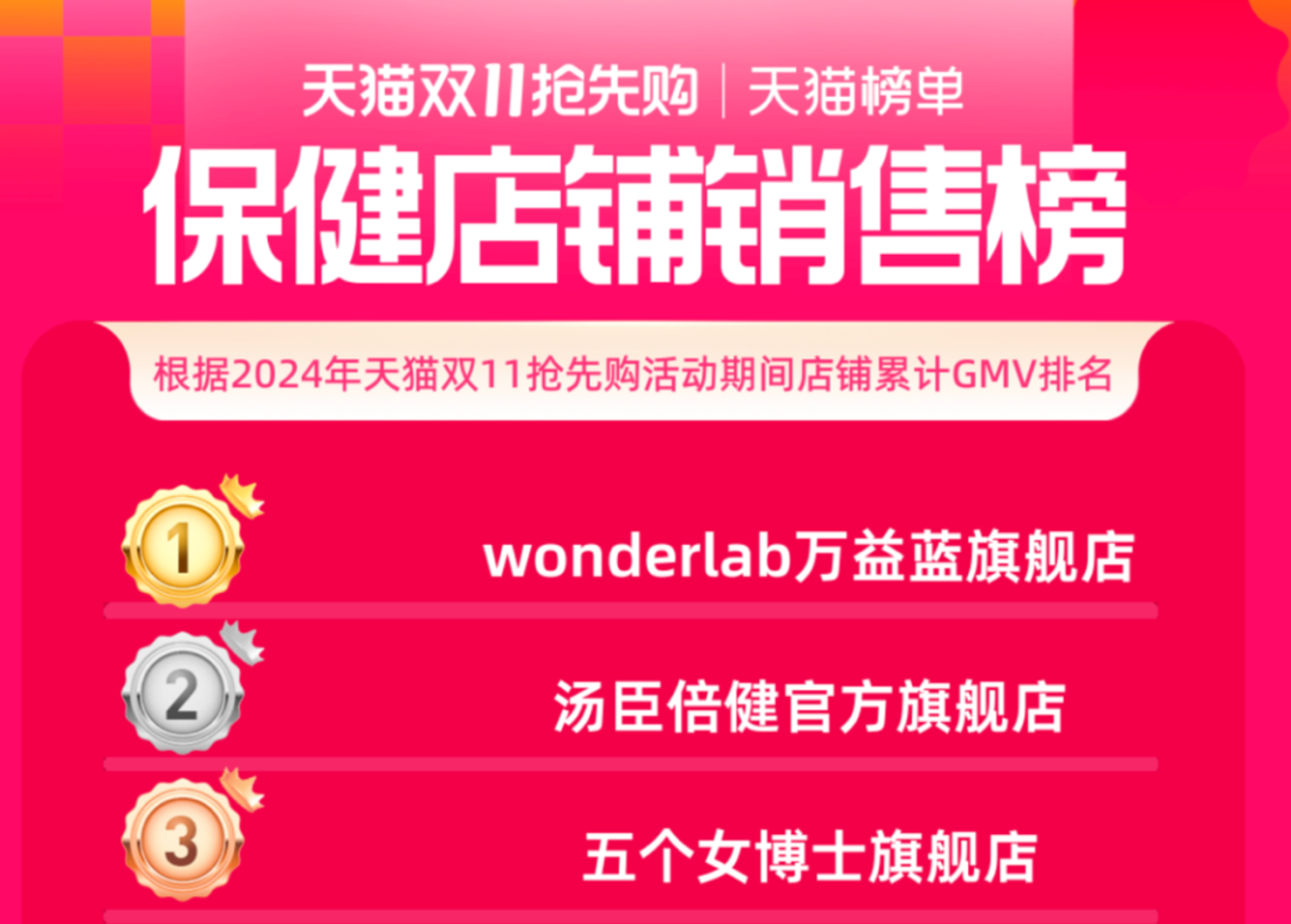 在今年双十一销售榜单中,万益蓝wonderlab 表现亮眼,成功超越汤臣倍健,位于保健店铺的销售排名榜首。
