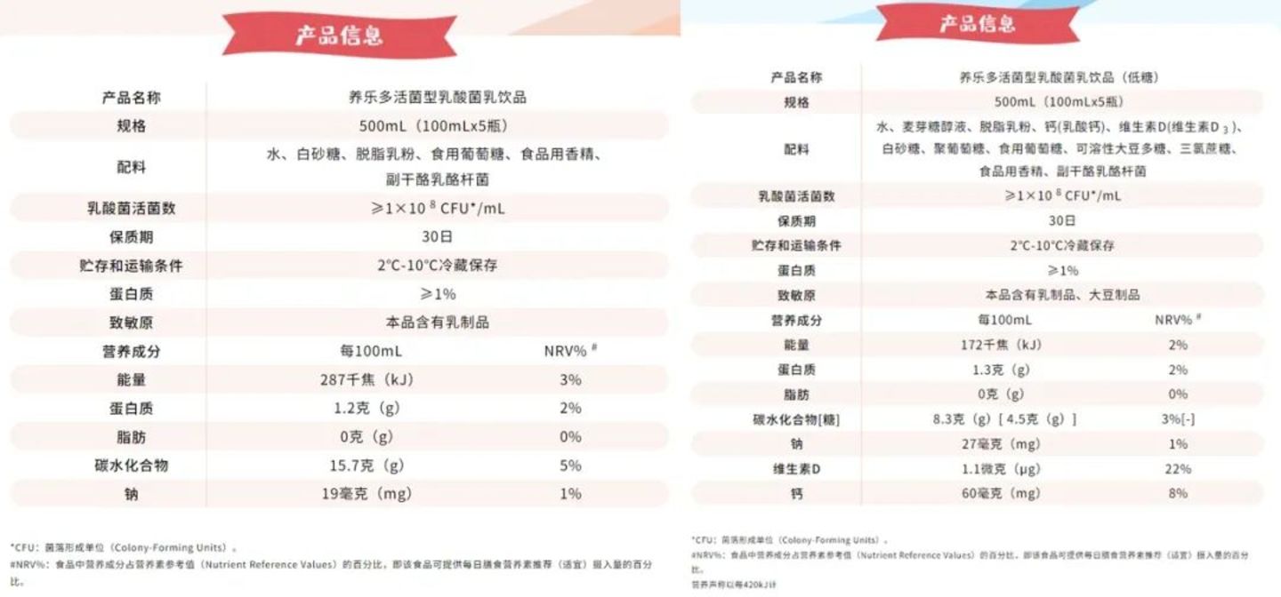 同时,养乐多主打的“100亿活性乳酸菌”卖点消费者似乎也不再买账,在配料表中,成分由高到低依次是水、白砂糖….最后才是活性乳酸菌。尽管能改善肠胃功能,调节免疫力,但其高糖、蛋白质含量低都成为养乐多并不健康的标签。