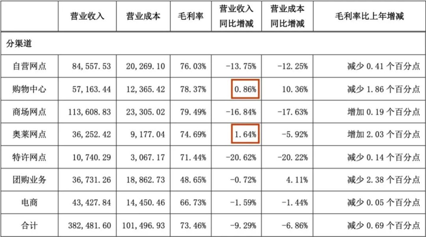 雅戈尔财报显示,2024年前三季度的分渠道收入中,仅有购物中心与奥莱网店实现了营收同比增长,而购物中心也是营业成本同比涨幅最高的渠道。