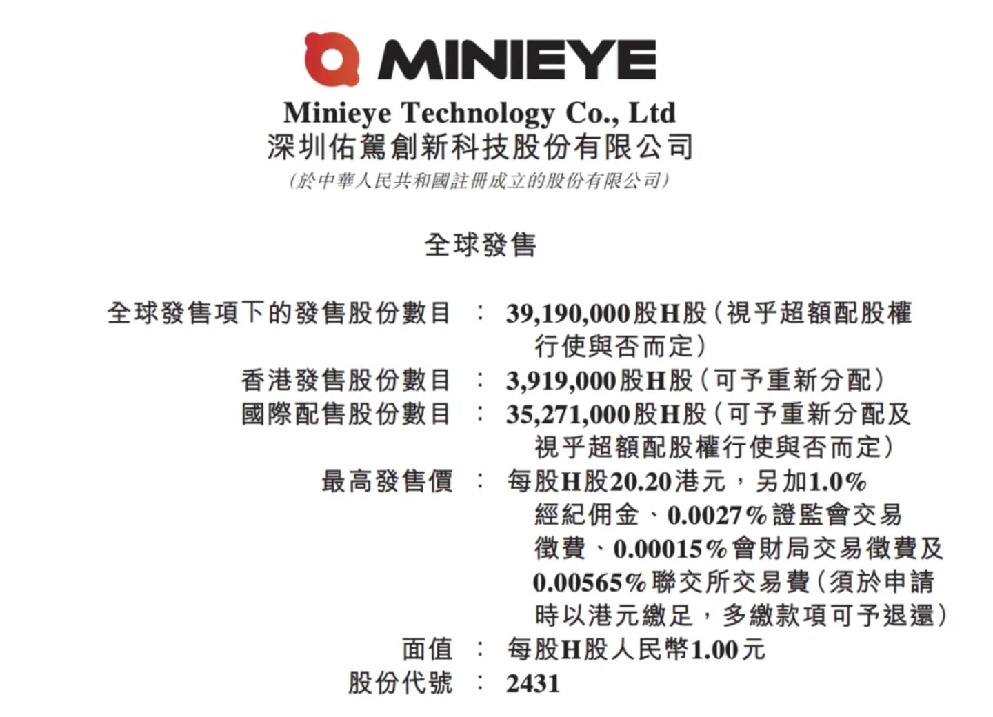 12月17日,深圳佑驾创新科技股份有限公司(简称“佑驾创新”, MINIEYE)在港股更新信息宣布,于12月17日上午9时开启招股、至12月20日上午11时30分结束,并计划于2024年12月27日正式以“2431”为股票代码在香港联交所主板挂牌上市。