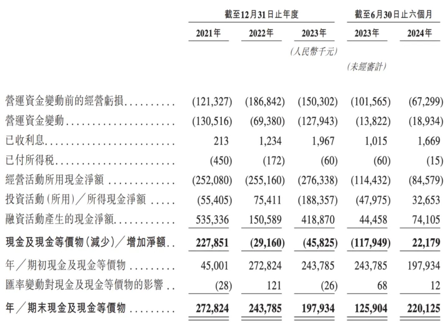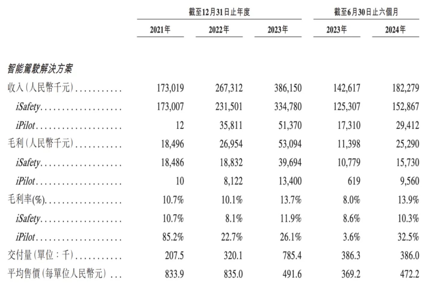 2021、2022年、2023年和2024年上半年,佑驾创新净亏损分别为1.4亿元、2.2亿元及2.06亿元和1.1亿。