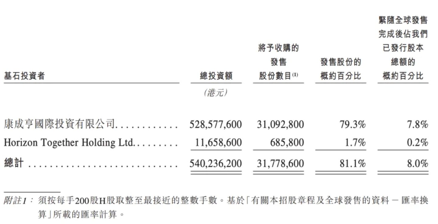 以每股17.00港元计算基石配售情况