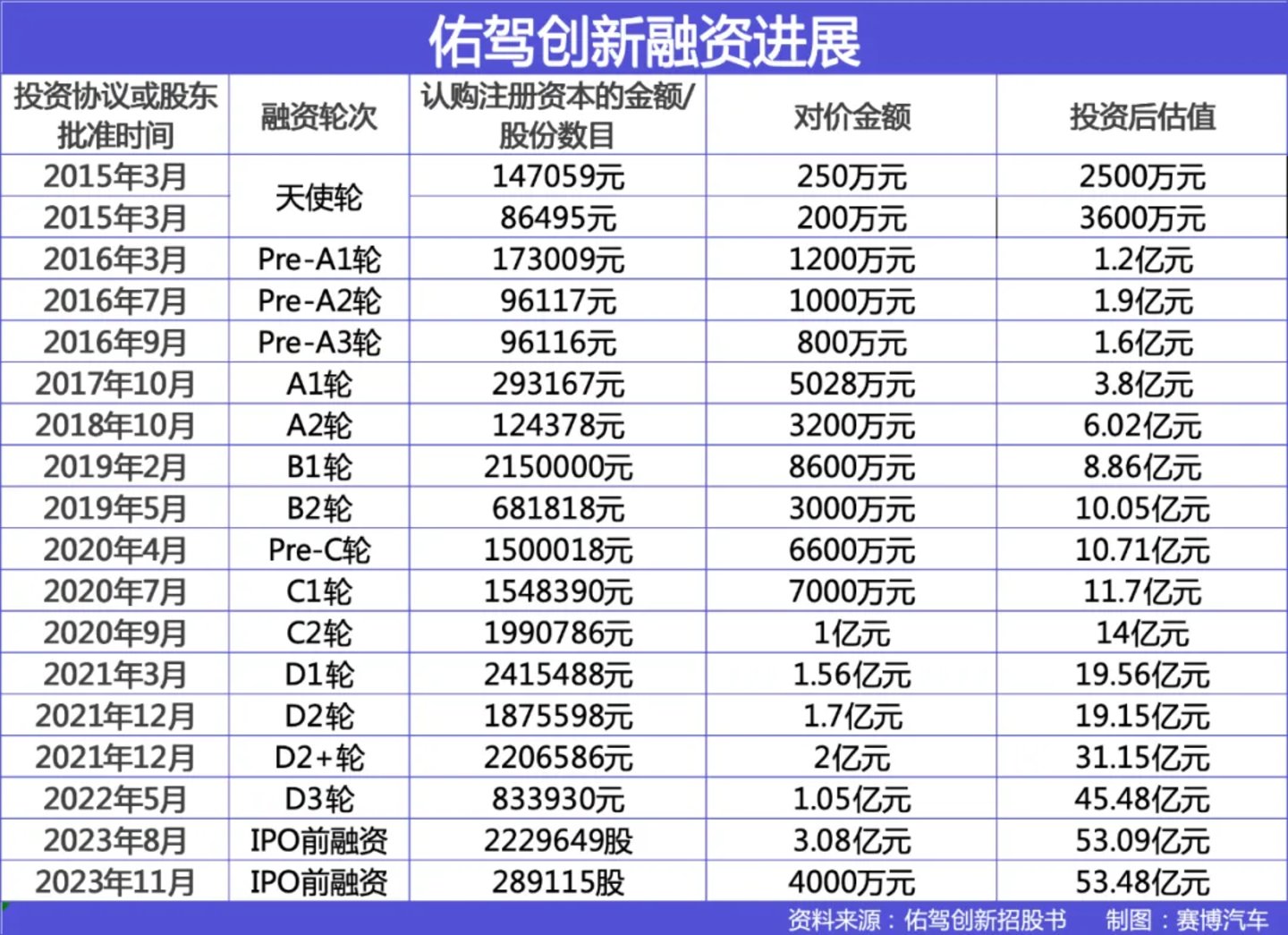 而招股书显示,自成立至今,佑驾创新进行了超10轮融资,累计融资金额为14.48亿元人民币。截至最后一次融资后估值为53.48亿元。