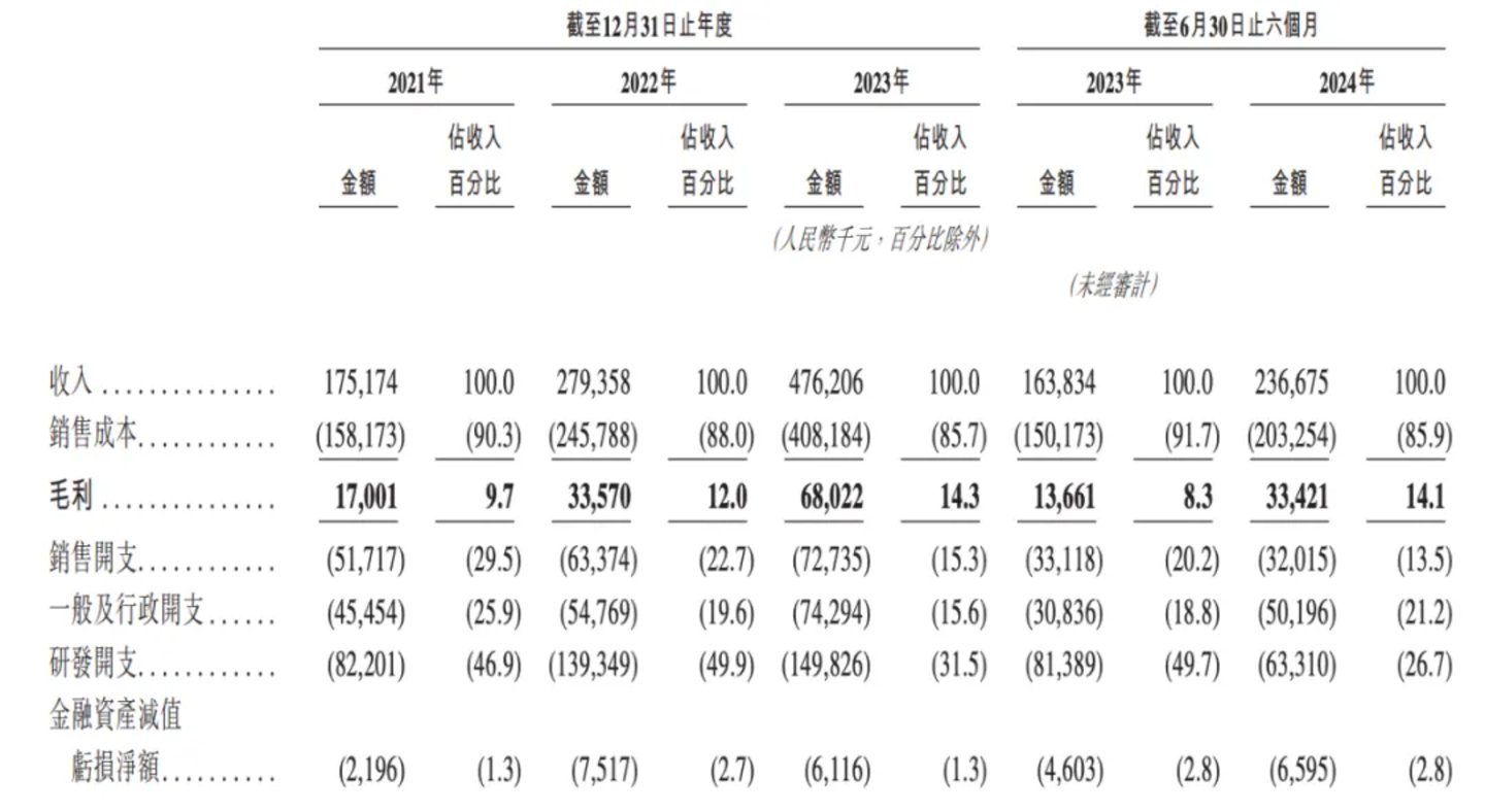 2021、2022年、2023年和2024年上半年,佑驾创新研发支出分别为8220万元、1.39亿元、1.50亿元和6330万元。