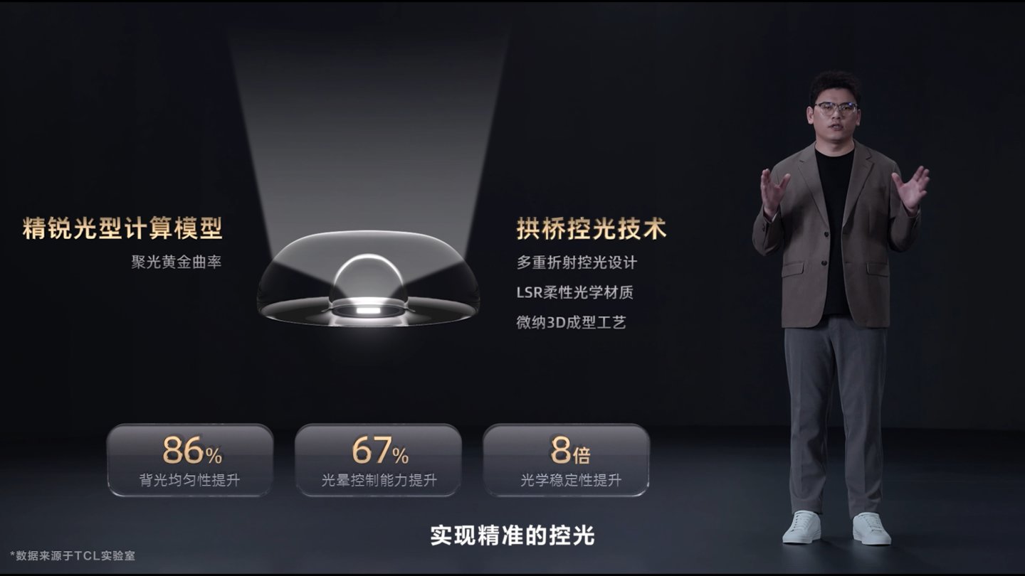 事实上,Mini LED电视的画质提升,不能只靠个别参数的提升,还需要一整套完整、全链路的系统性光学解决方案,涉及很多Mini LED底层技术。基于此,TCL研发了万象光晕控制技术,采用这一技术的分区便是万象分区,控光能力进一步提升。