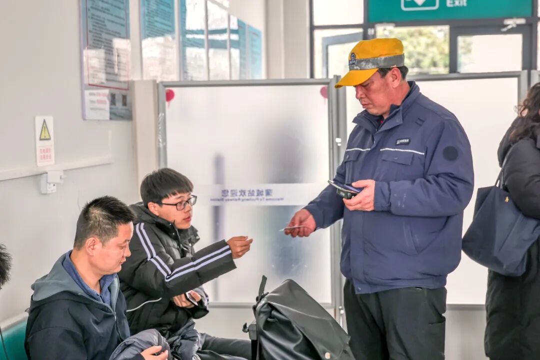 车站仅有4名客运工作人员,分别负责售票、安检等岗位。人手不多,但却撑起周到扎实的服务,保障车站日常运转不停歇。