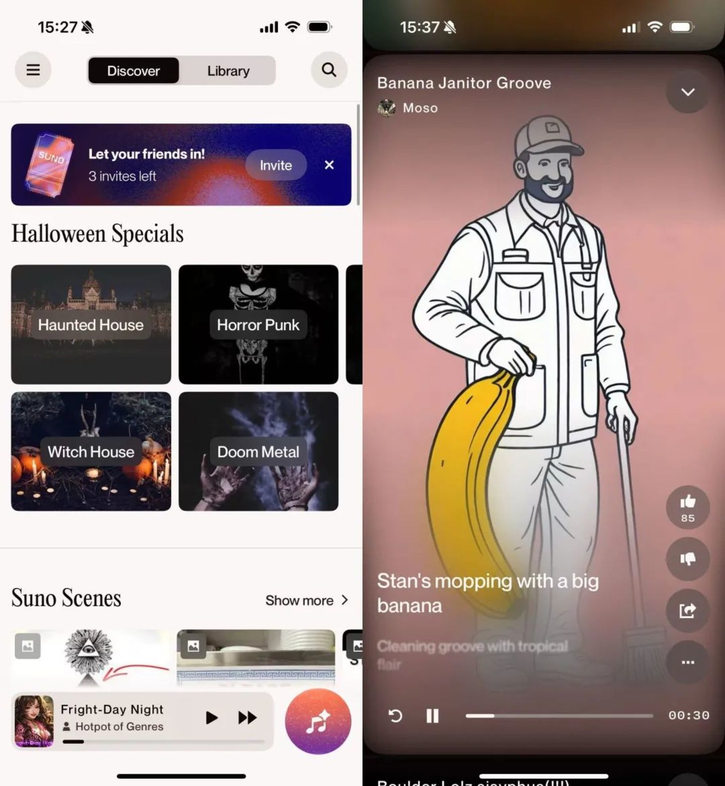 从AI音乐制作工具到AI音乐应用,Suno提供了一个传统与AI融合的案例。打开Suno会产生一种亲切感,如果用一句话来描述Suno,大体是“网易云音乐+抖音”结合体。熟悉的产品类型无形中降低了用户的使用门槛,依赖长期使用习惯,他们能迅速获取“音乐软件”“社交平台”两种属性。