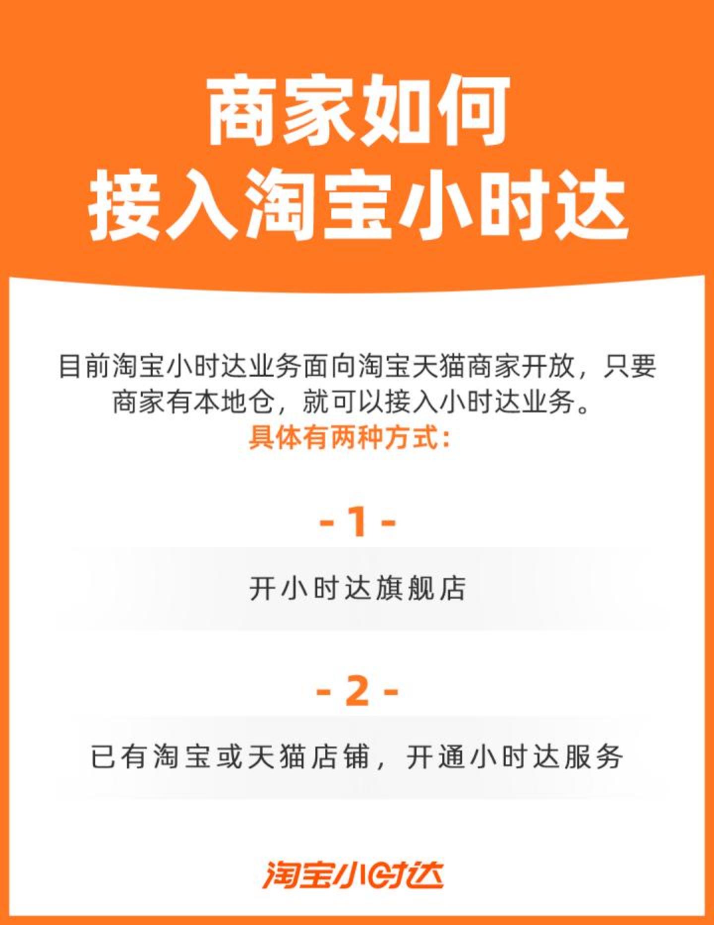 今年7月,淘宝再次升级小时达的业务优先级,在app首页给予小时达一级流量入口。同时与饿了么达成合作,面向有本地仓,能满足即时配送需求的淘天商家开放入驻。