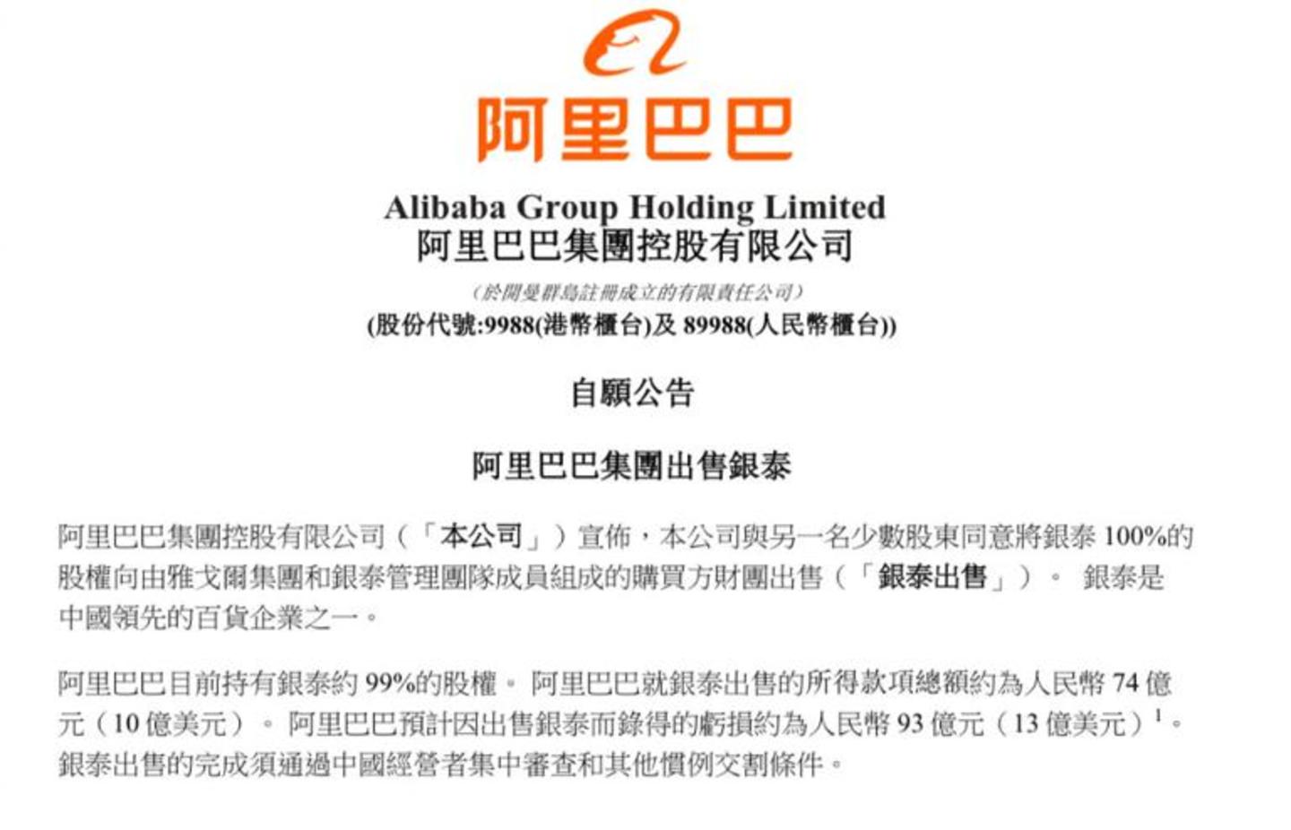 在出售新零售业务的传言喧嚣了近两年后,阿里还是将银泰卖了。
