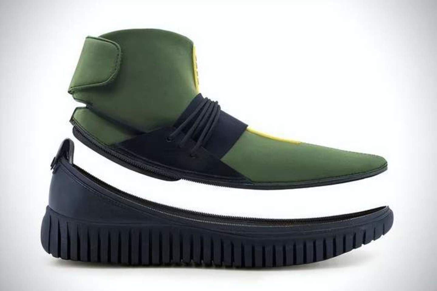 它当时真的是颠覆性的设计,一直到现在我都觉得它非常具有革命性。它最大的特点就是把鞋面和鞋底分开了。刚才我们聊到,传统鞋子是通过胶水和中底将鞋面和鞋底结合起来的。而这个品牌直接取消了中底,把粘合媒介从胶水变成了拉链。