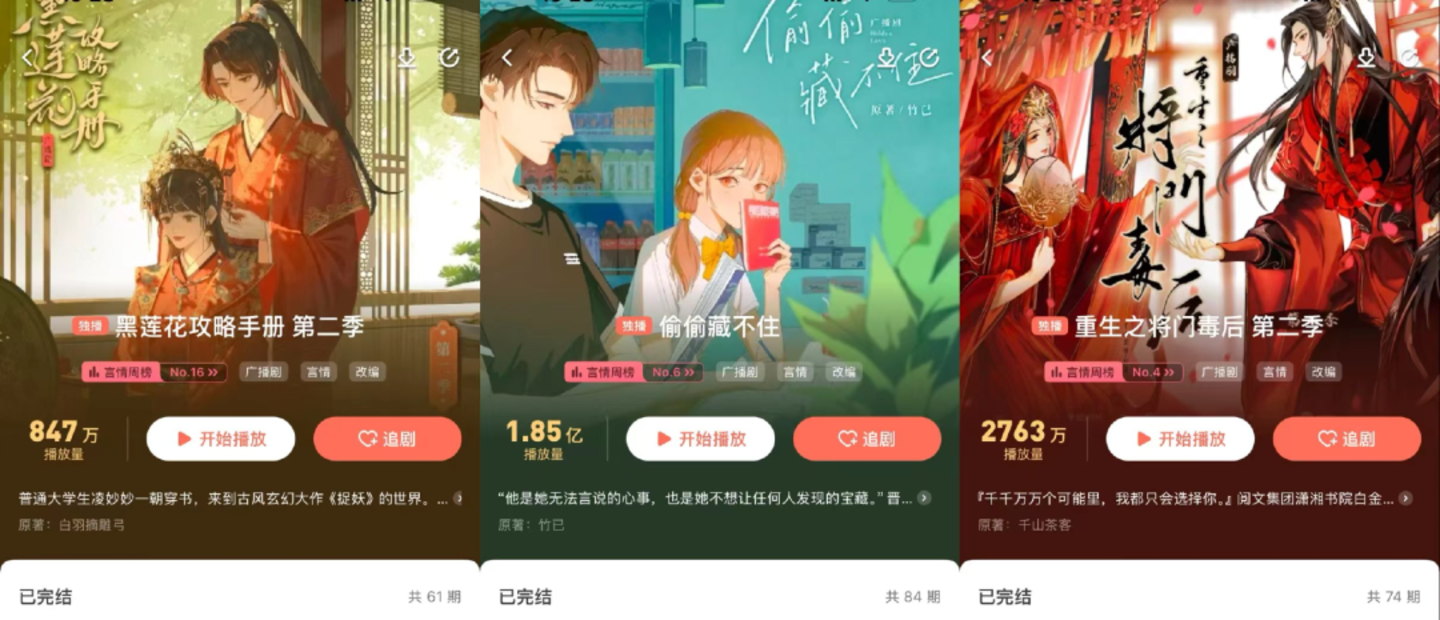 更重要的是,据相关的数据统计,即便是热门赛道的短剧,观看一部爆款的价格在80-100元之间,更重要的是,随着短剧行业的竞争加剧和规范化,短剧的价格也越来越便宜。这就意味着,热门广播剧的费用,也高于短剧。