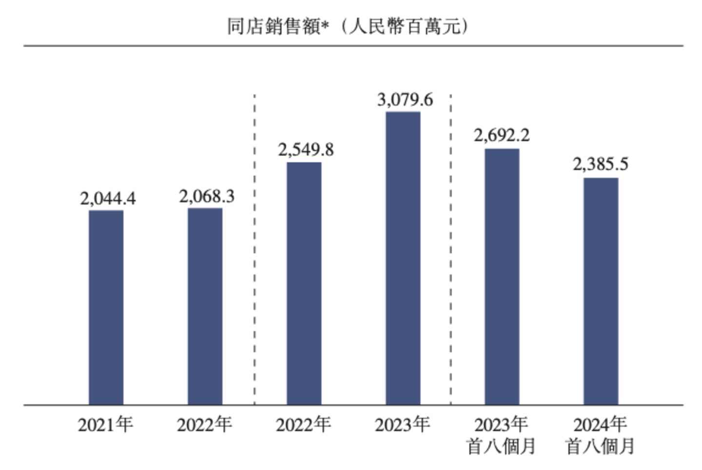 同店销售额方面,小菜园在2022年和2023年分别实现了1.2%、20.8%的增长,但2024年前8个月同比减少了11.4%。同时,小菜园的门店层面经营利润率也从2023年的19.7%降至2024年前8个月的17.8%。