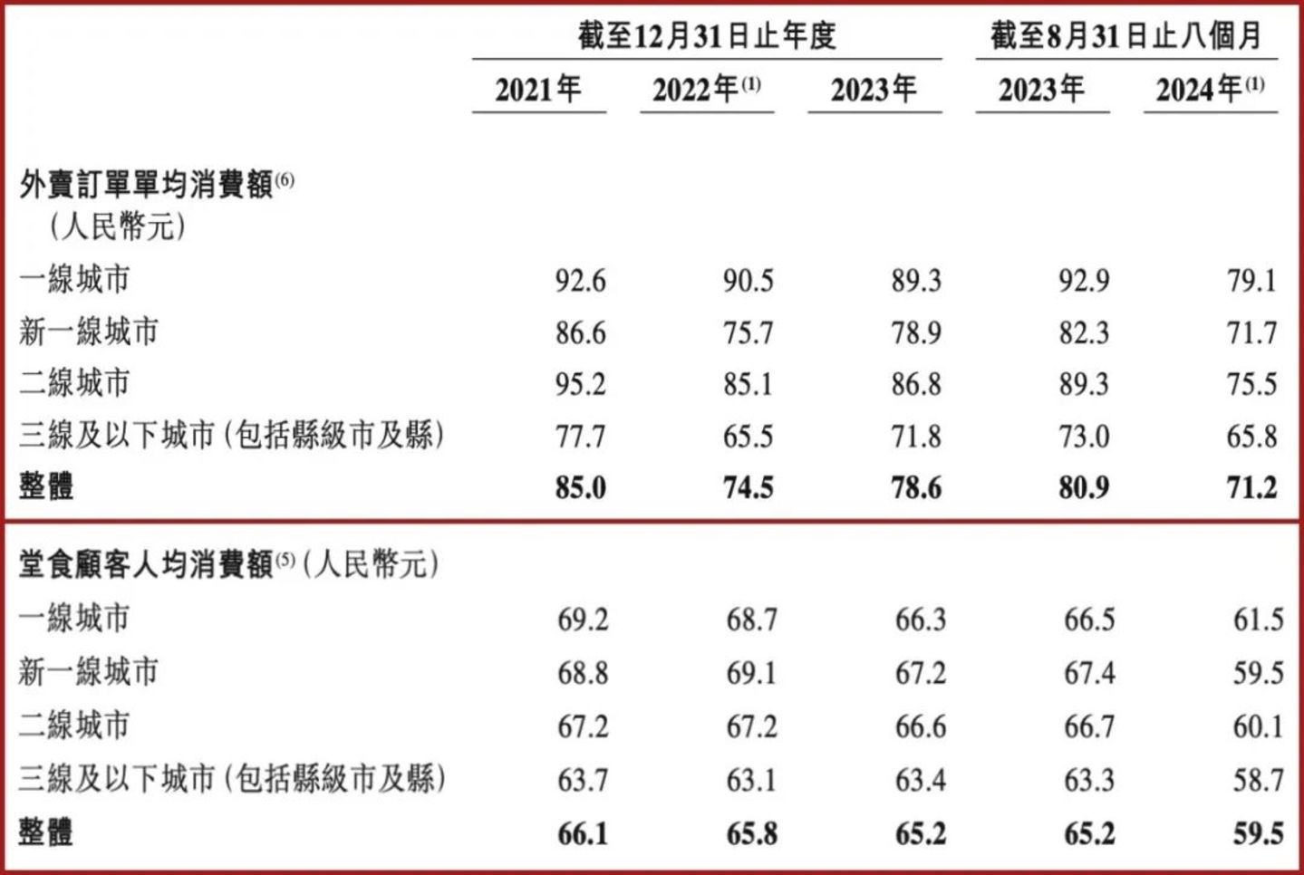 小菜园定位于大众便民中餐市场,是由客单价决定的。2021年至2023年、以及2024年前8个月(以下简称“报告期”),小菜园门店堂食顾客人均消费额分别为66.1元、65.8元、65.2元、59.5元。