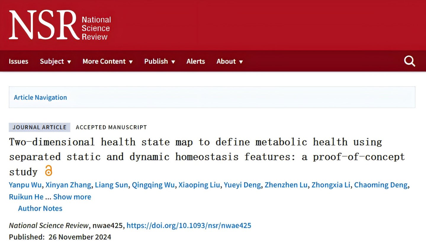 这项历时6年的研究,开拓性地运用新理念和新算法对人体进行全面的代谢健康评估,为建立以“健康为中心”的评估体系提供了新的策略和手段,在全球率先对内稳态概念的多维度量化评估方面取得突破性进展,亦引起国内外专家的关注。