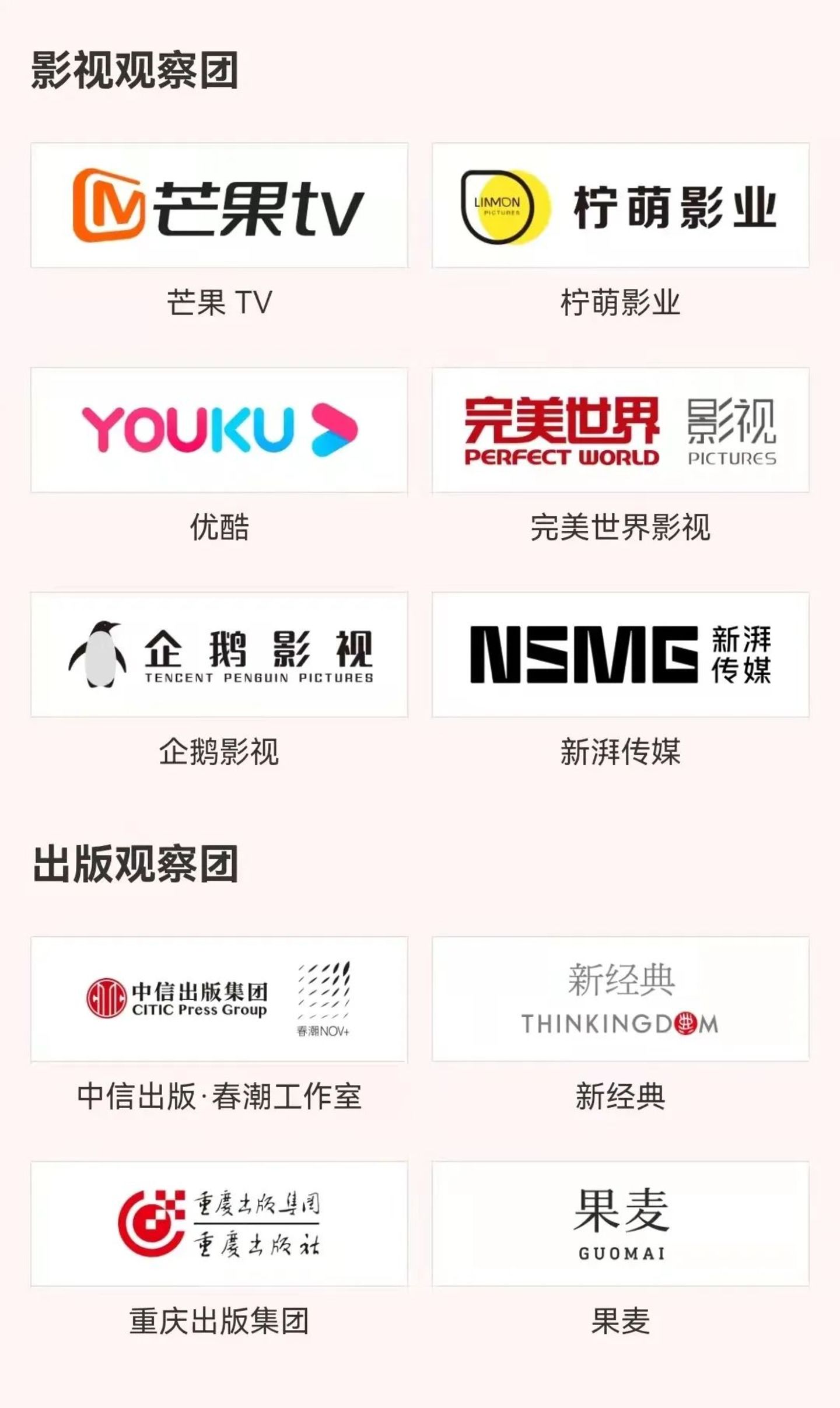 2021年时,豆瓣阅读第三届长篇拉力赛影视观察团成员为芒果TV、柠萌影业、企鹅影视、猫眼影业、儒意影业、华谊兄弟,而2024年第六届豆瓣阅读长篇拉力赛影视观察团为优爱腾芒,至此四大视频平台全部到场。如今,豆瓣阅读与视频平台的合作还在持续深化,比如2023年与优酷联合推出了以“古风世界”为主题的征稿活动。