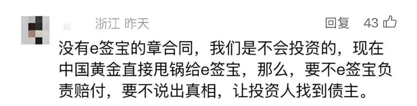 不少投资者的想法是:有中国黄金子公司做代运营,即使华侨控股爆雷,还有中国黄金托底。也因此,在华侨控股爆雷后,投资者纷纷找中国黄金讨说法。