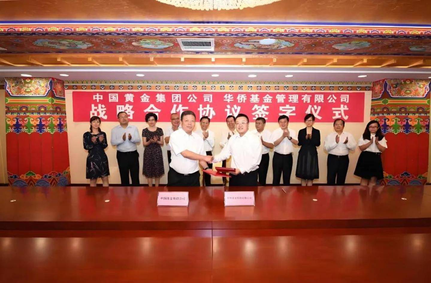 据中国网报道,2017年9月19日下午,上述两家公司举行了战略合作签约仪式,根据协议,双方将全面开启在黄金产品、黄金流通和黄金金融等领域的深度合作。彼时,中国黄金集团众多高层管理人员出席了签约仪式。