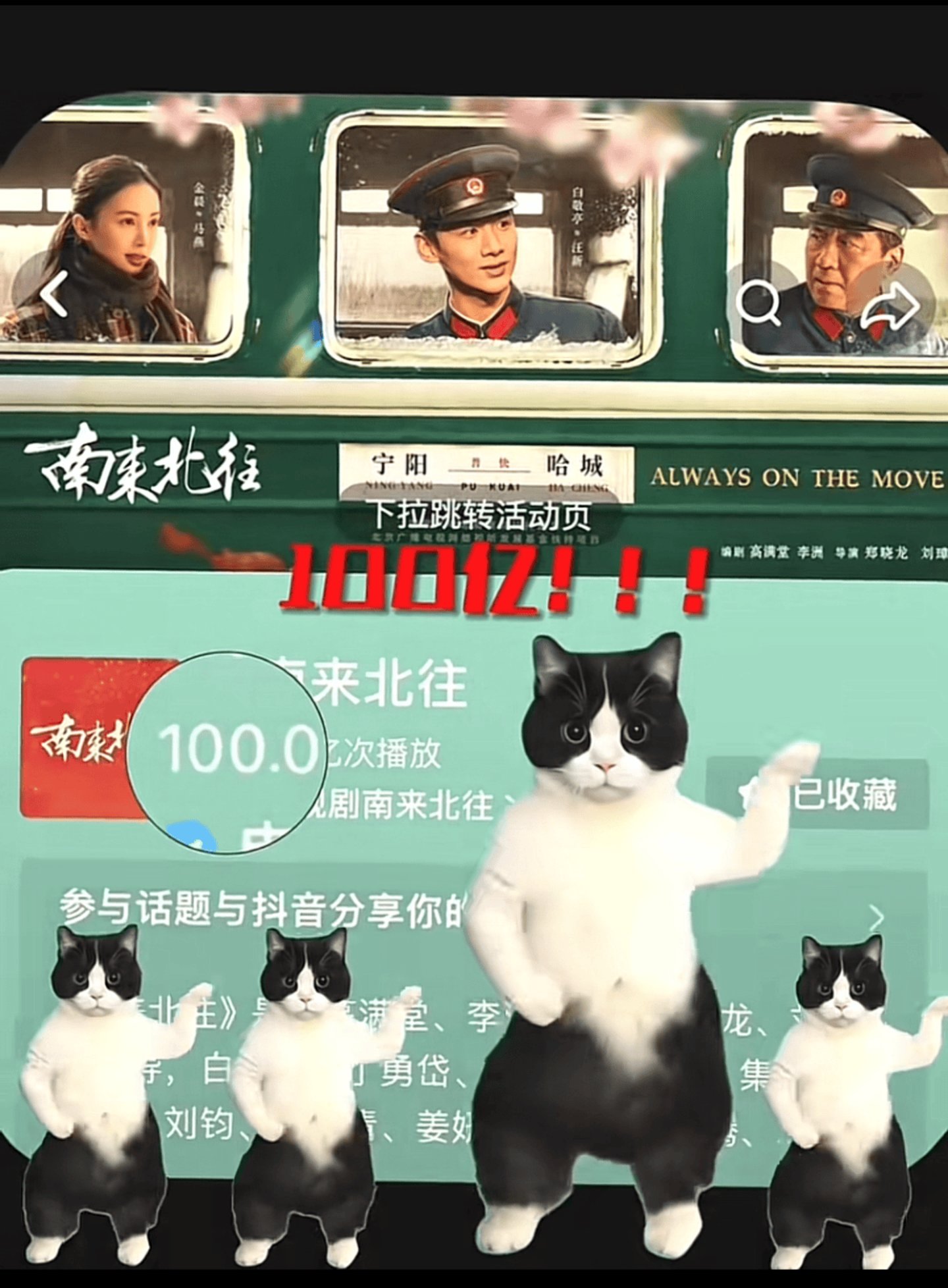 从春节档开始,抖音就依托其巨大流量池和庞大路人盘的天然优势,作用于剧集的热度发酵和传播。最具代表性的案例当属在春节档首播剧集中抖音主话题播放量破百亿的《南来北往》,根据抖音公开数据显示,该剧开播首日抖音#南来北往#主话题超61亿播放量,播出后第3日起就一直占据抖音影视榜榜首。