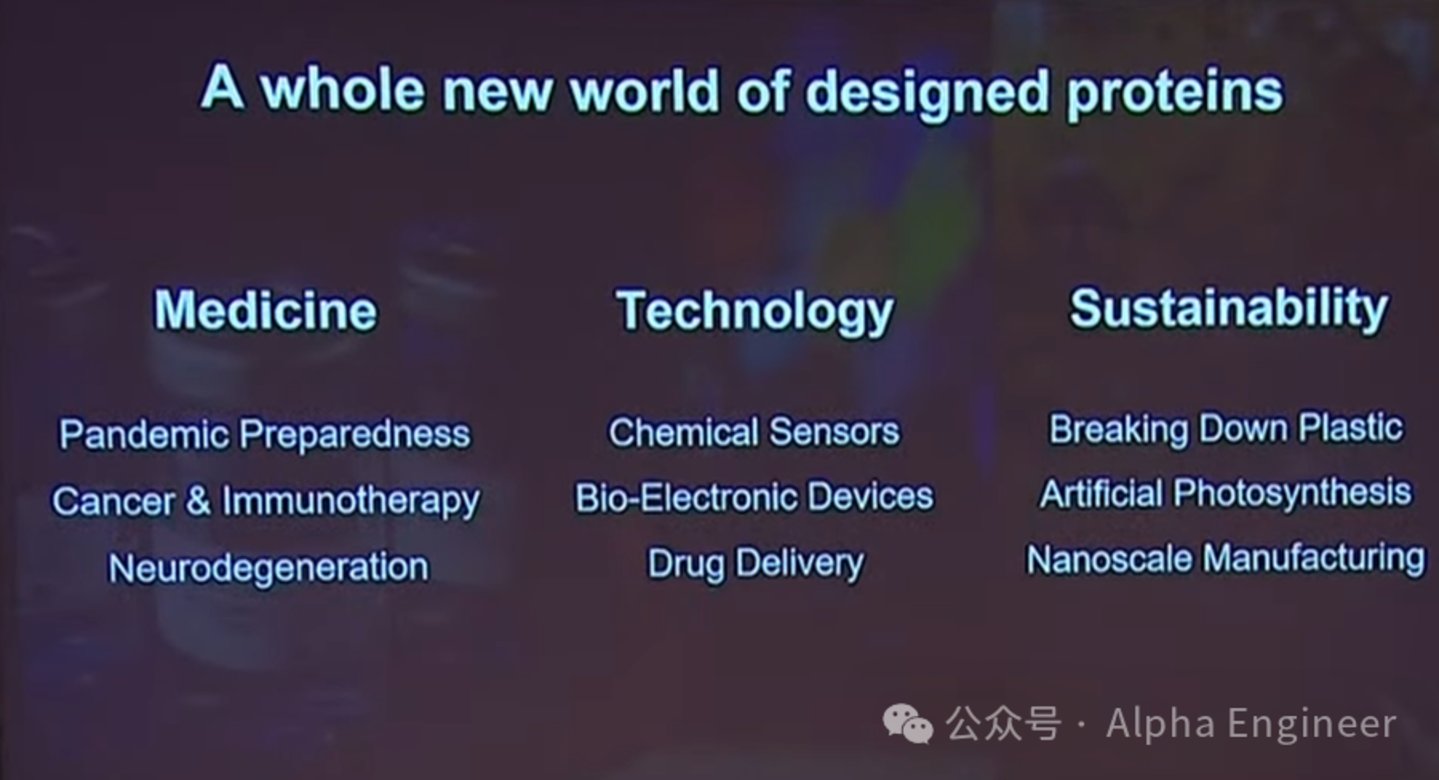 在上篇中,David Baker介绍了AI辅助蛋白质合成的技术原理,以及蛋白质合成在医药领域的应用场景,包括治疗癌症、自体免疫疾病、流行病、神经退行性疾病等。
