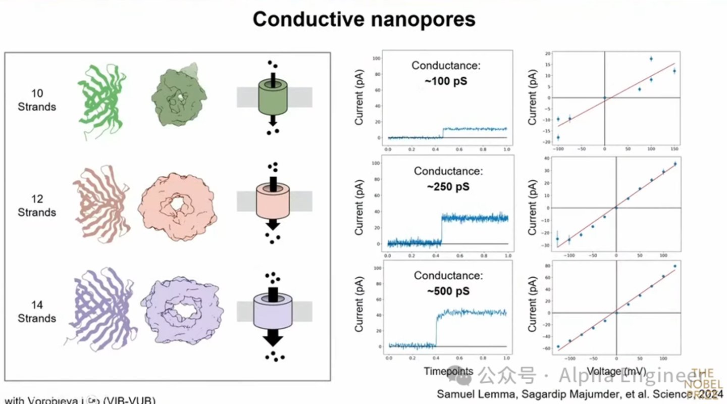 于是科学家使用神经网络从零开始训练出了专门用于传感的成孔蛋白。如下图所示,我们可以设计出不同孔径的通道蛋白。