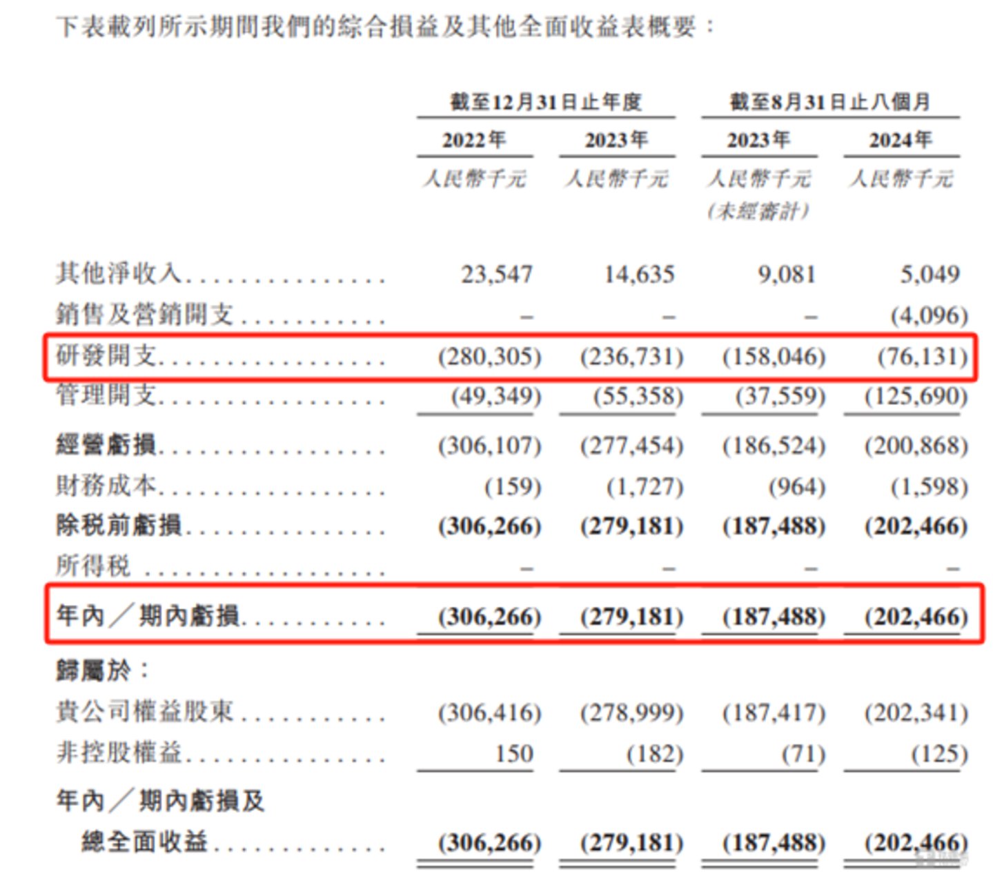 由于无产品,这也导致派格生物仍旧处于年年亏损的状态。2022年-2023年和2024年1-8月(下称“报告期”),派格生物年内亏损分别为30626.6万元、27918.1万元、20246.6万元,合计亏损了78791.3万元。