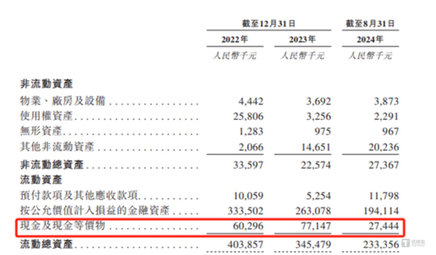 除了亏损之外,更为令人担忧的是派格生物的现金流。截至2022年末、2023年末、2024年8月末,派格生物的现金及现金等价物为6029.6万元、7714.7万元、2744.4万元,目前公司的现金储备已不足3000万元。