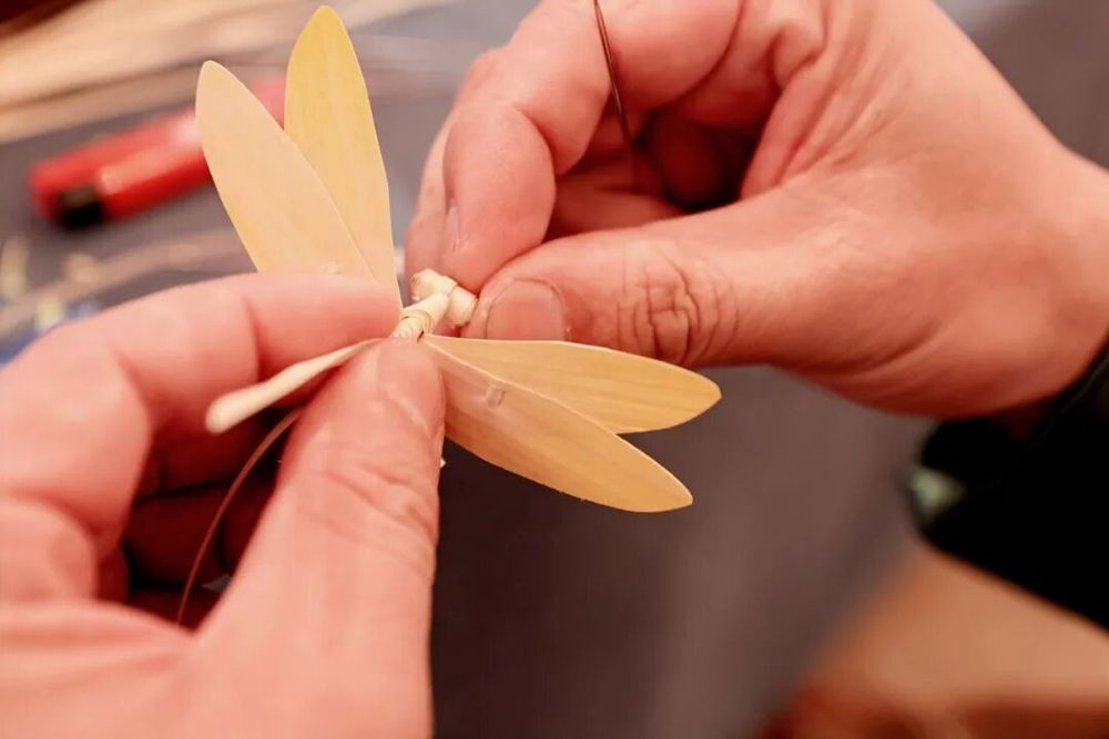 罗志勇棕编作品《醒狮》:选用优质棕榈嫩叶经过采叶、划叶、熏叶、泡叶、露叶、晒叶、高温染色、编制等精心制作而成,作品色彩鲜艳,活灵活现。