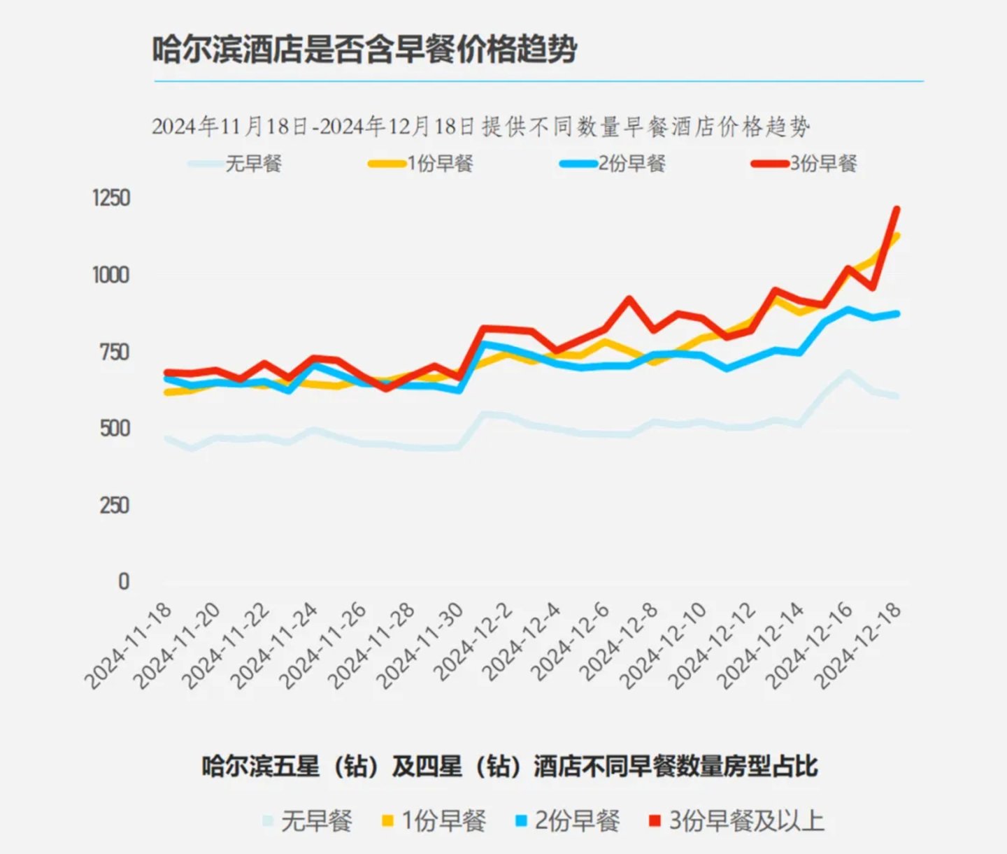 据Fastdata极数发布的《哈尔滨酒店行业消费洞察报告2024》显示,2024年11月开始哈尔滨酒店价格上涨趋势明显,具备支付能力的旅行者愿意为高品质酒店支付更高的溢价。