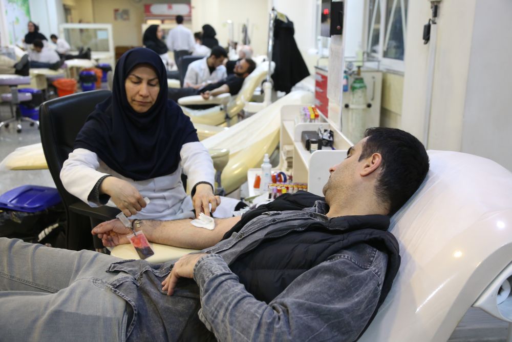 3月7日,民众在伊朗首都德黑兰一处血液中心献血。