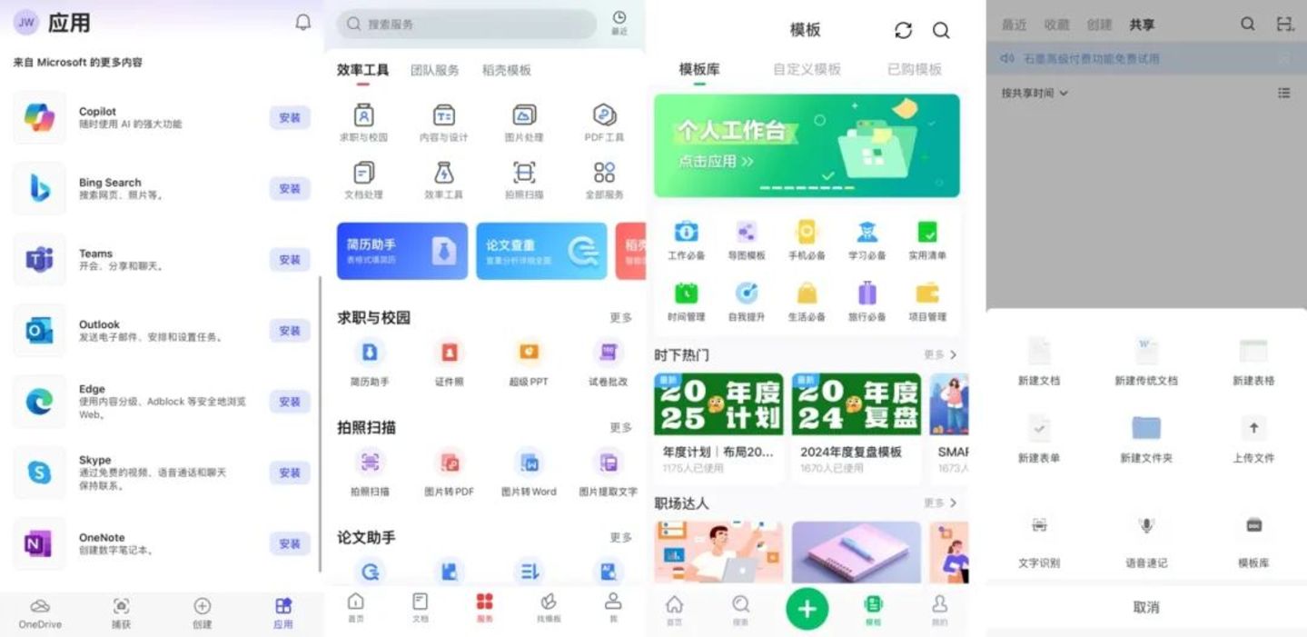 注:从左至右依次为:微软、WPS、印象笔记、石墨文档