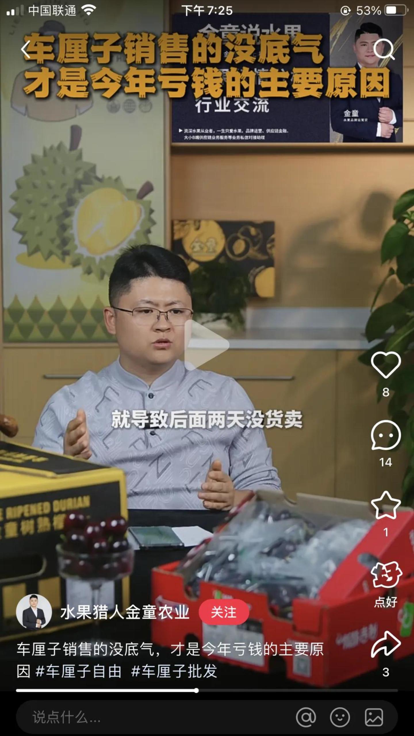 一位名为@水果猎人金童农业的博主,同时也是广州江南果蔬市场的车厘子货主,给出了自己的观察。