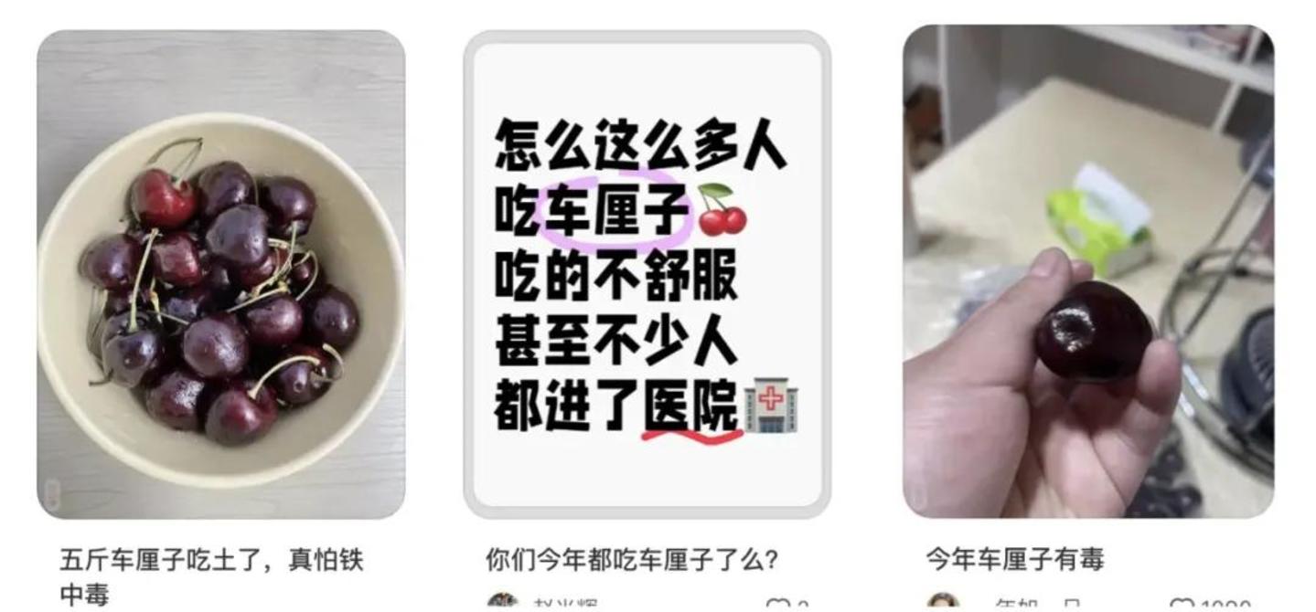 大部分消费者根本没有精力去细究这些食品安全传言的真实性的。有的消费者不在乎这些留言正常按需吃喝,有的本着宁可信其有的原则直接把车厘子打入冷宫,还有的是吃了车厘子吃出问题刚好被指明了“罪魁祸首”,所以刚好来骂一骂……