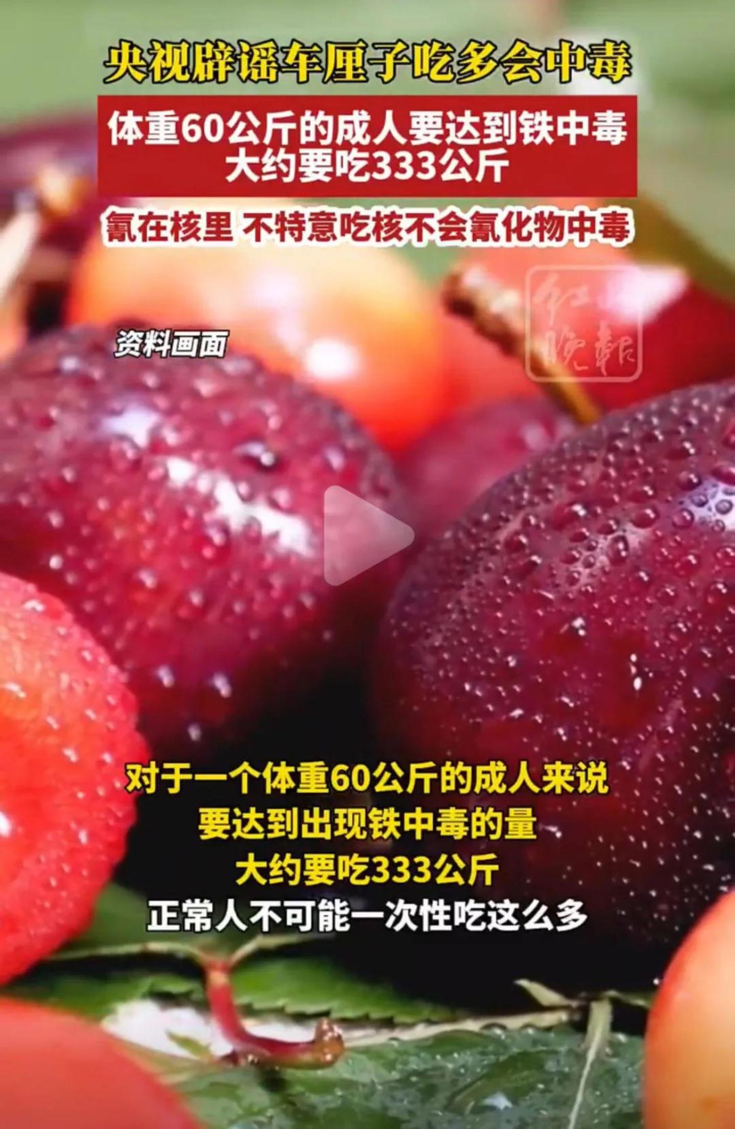 另一种说法更是直接一步到位,称车厘子有毒,吃多了会导致铁中毒和氰化物中毒。这甚至不是网友臆想的原理,而是有一些“专家”的医学支持。现在搜索网上相关新闻,还能看到称车厘子“微毒性”的专家引语。