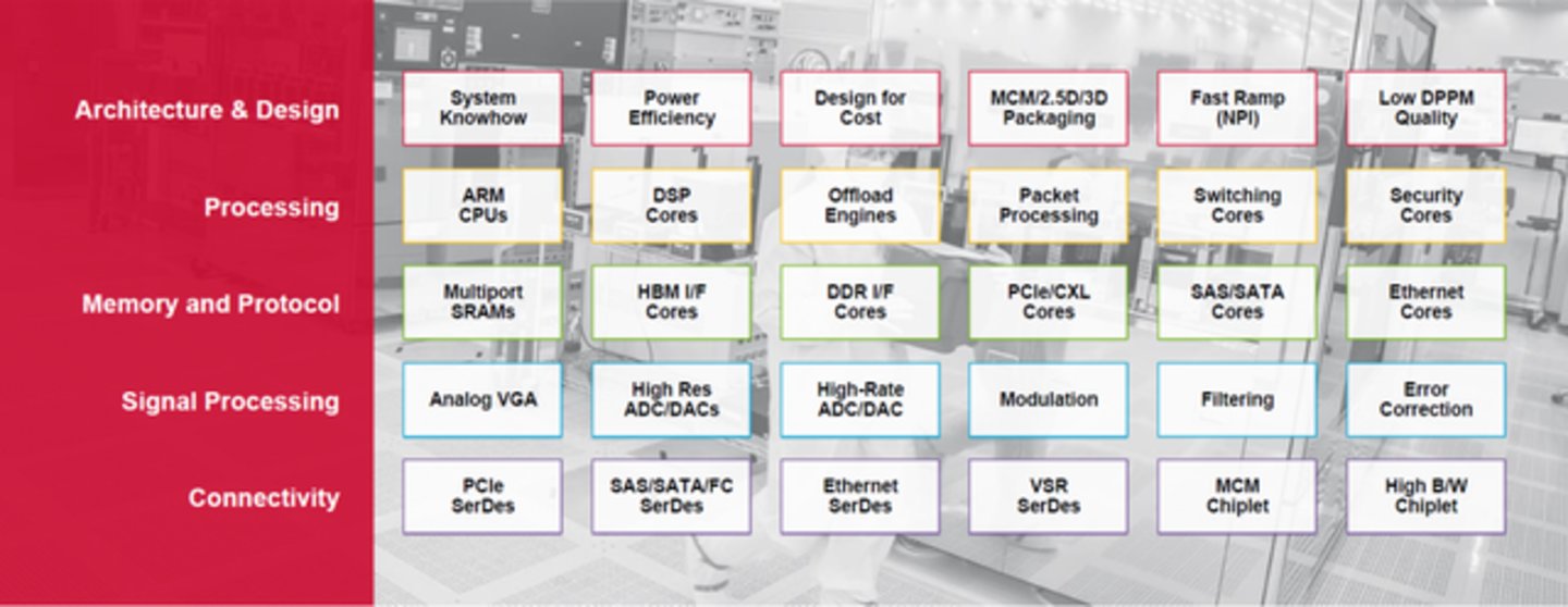 按照博通的公开信息,除了传统的CPU/DSP IP核外,博通还具有交换、互连接口、存储接口等关键IP核。这些成体系的IP核可以帮助博通降低ASIC/DSA产品成本和研发周期,特别是降低不同IP核联合使用的设计风险。