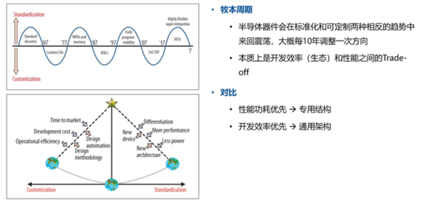 按照牧本定律,半导体芯片会在通用化/标准化和定制的两种相反趋势振荡,这一振荡周期约为10年。大概10年前,Alexnet算法一鸣惊人,带飞了英伟达GPGPU的销量。那么,10年后的今天,博通已经拥有除了生态之外的AI芯片的顶级技术。在博通股价大涨之后,估计很多人会有一个疑问:博通定制AI芯片是否能够以定制AI芯片成为新的主流呢 ?