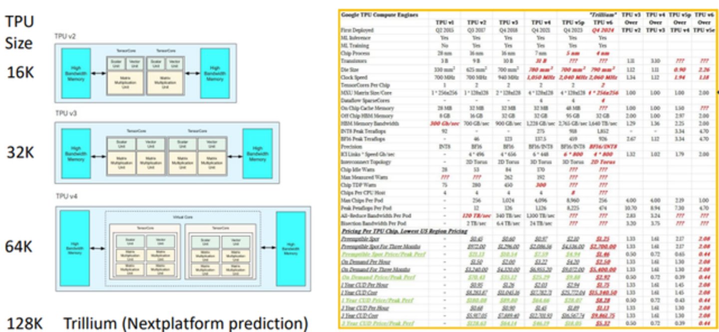 由于博通已公开的信息有限,那了解博通定制加速芯片技术的最好参照就是Google的Trillium TPU,也就是TPU v6。
