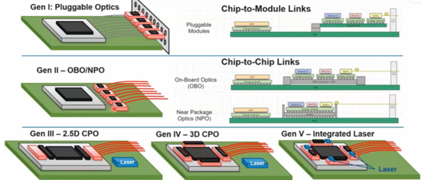 2.5D/3D CPO与光模块、OBO、NPO的对比(来源:ALPHAWAVE SEMI)