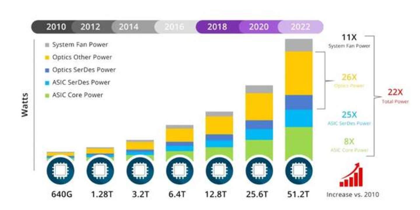 光互连功耗占比逐年提升(来源:George@fs.com)