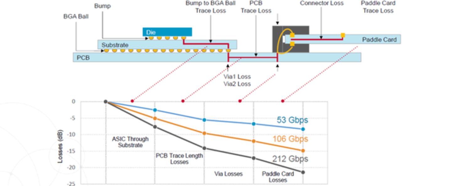 传统PCB与卡间互连的信号损耗远大于Die内(来源:博通)