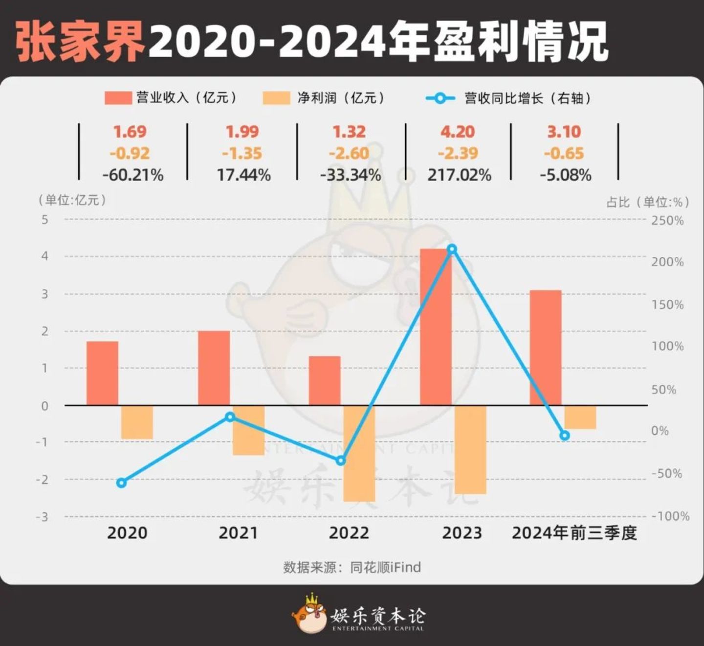 张家界2020-2024年盈利情况 数据来源:同花顺iFind