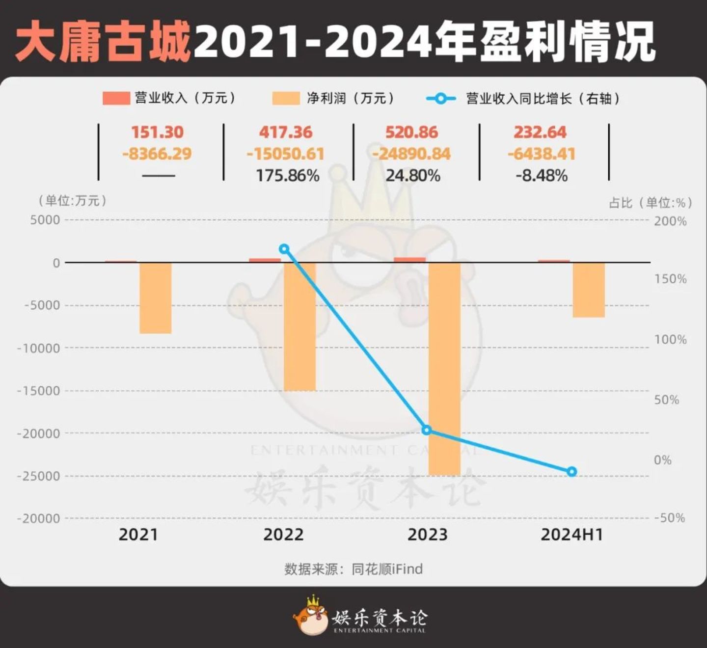 大庸古城2021-2024年盈利情况 数据来源:同花顺iFind