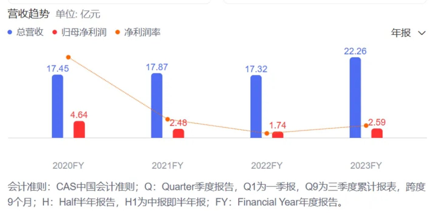 2023年时,丸美营收为15.6亿元,同比上升11.63%,但与往年相比,占总收入比重明显下滑,为70.14%。