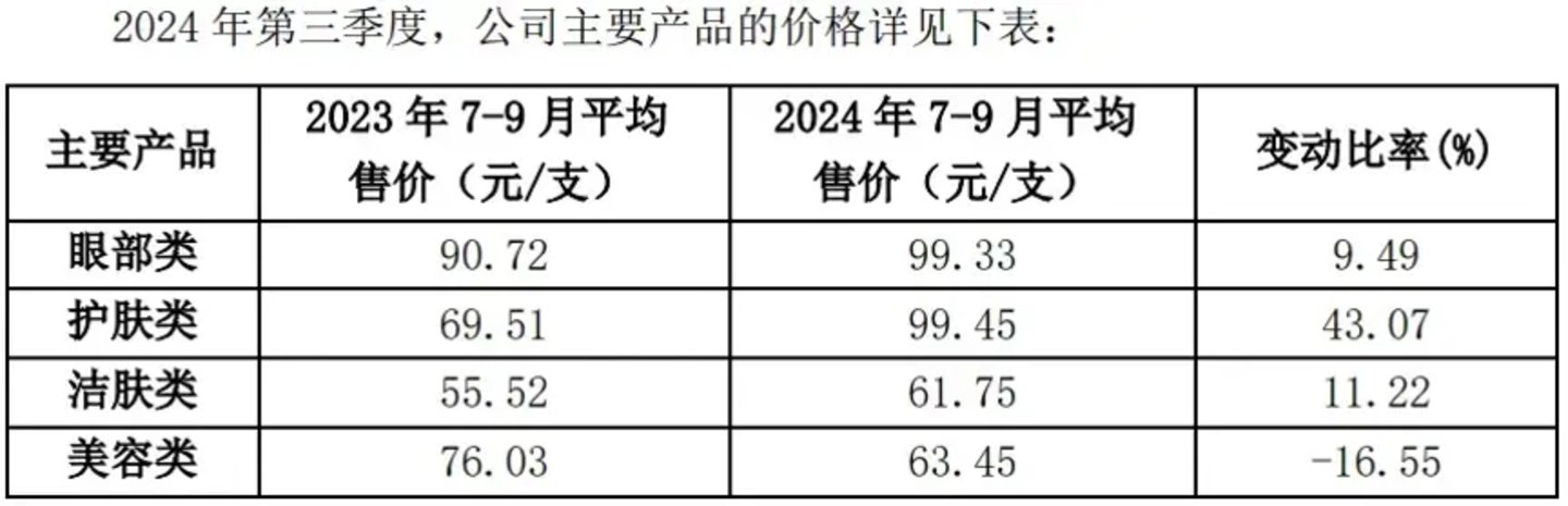 不过,丸美业绩回暖翻红,主要应归功于其产品均价的上涨和原材料成本下降。