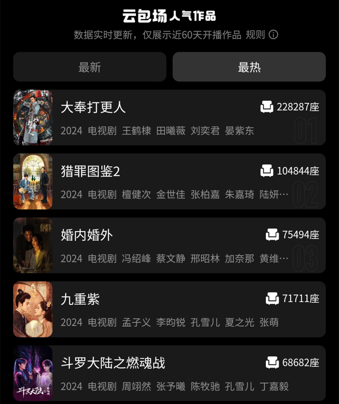 腾讯视频云包场60天内人气作品排名Top5
