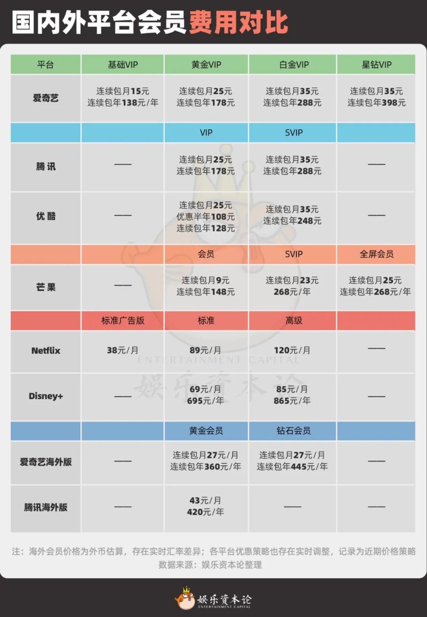 对此,营销从业者仲磊笑言,“如果把Netflix的会员费换算成人民币,相似权益的会员费用,是国内平台会员价格的3倍。”