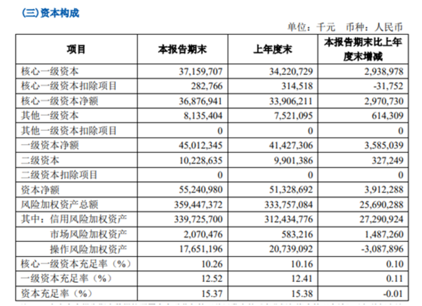 截至2024年三季度末,齐鲁银行核心一级资本充足率为10.26%,一级资本充足率为12.52%,资本充足率为15.37%。