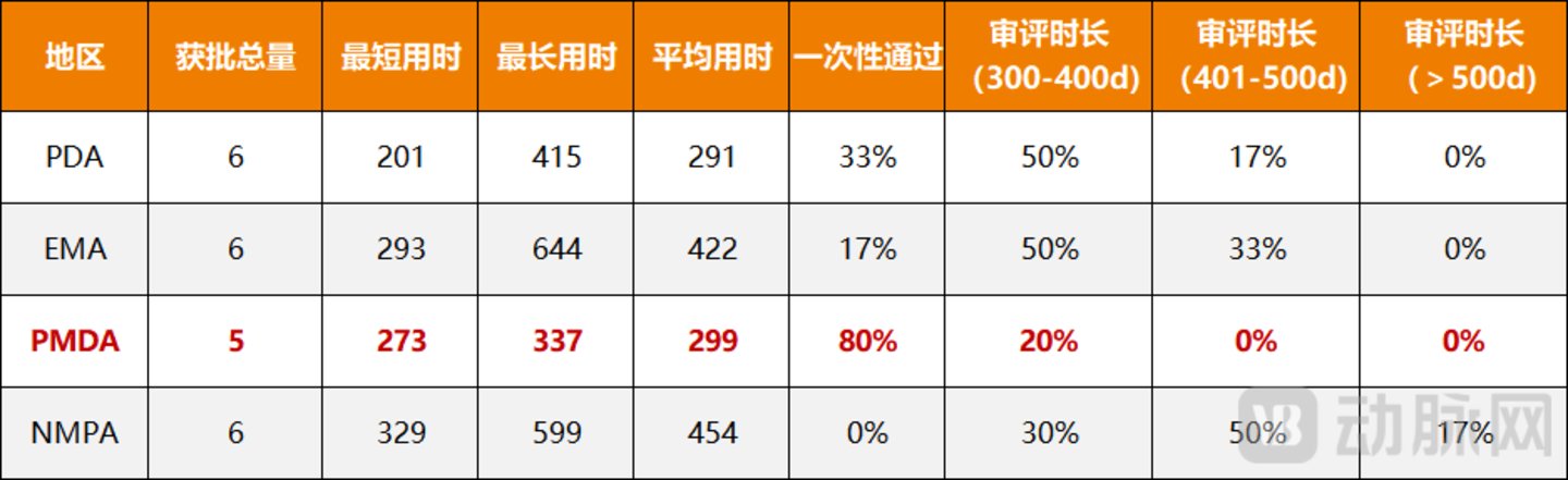 以传奇生物西达基奥仑赛(CARVYKTI)为例,2024年8月,其正式在中国获批上市,成为国内第6款CAR-T产品。但其实早在2022年,西达基奥仑赛就已先后登陆美、欧、日三地,而从审批周期来看,其在日本用时最短,从注册到上市仅294天,这远远低于FDA以及EMA的审批周期。