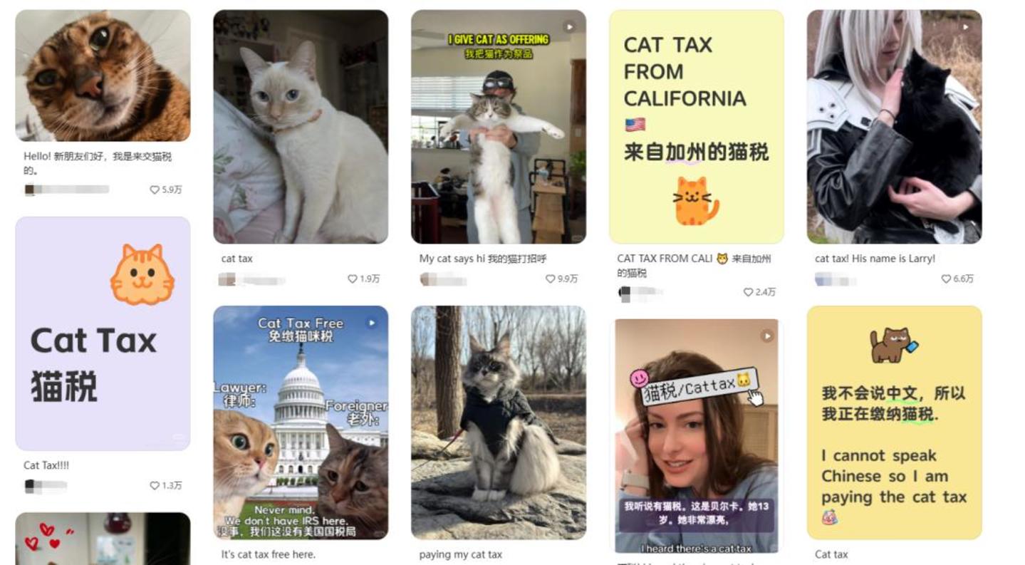 随着国外用户的激增,小红书上开始出现了一些新奇的互动。“交猫税”(晒猫)、“做英语完形填空”(帮中国网友写英文作业)、“教美国人数学”……这些看似不搭边的活动,在小红书上却频繁上演。