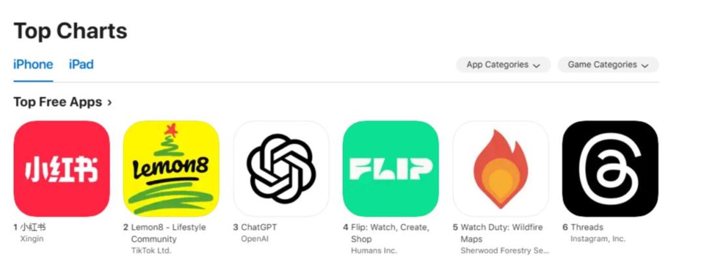 由于TikTok难民的涌入,小红书在国外市场迅速走红,一度跃升至美国App Store免费应用排行榜的首位。然而,爆火背后,小红书也面临着前所未有的挑战。