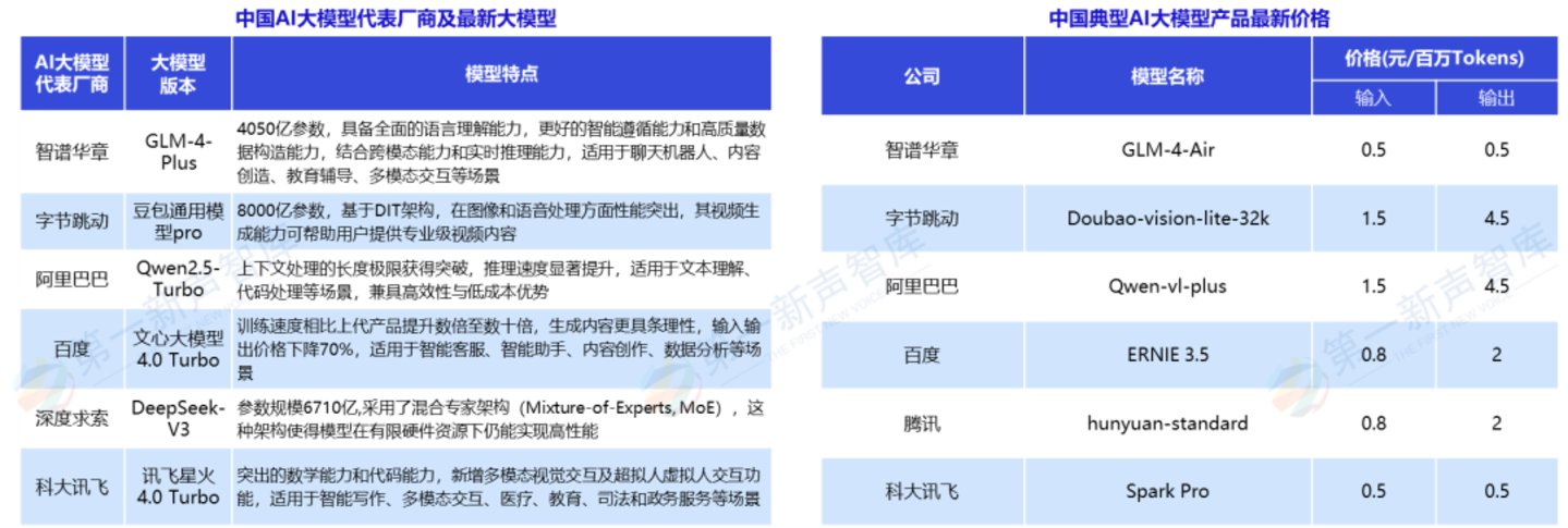截止到2024年底,我国典型AI大模型的价格下降至0.5元/百万Tokens以内